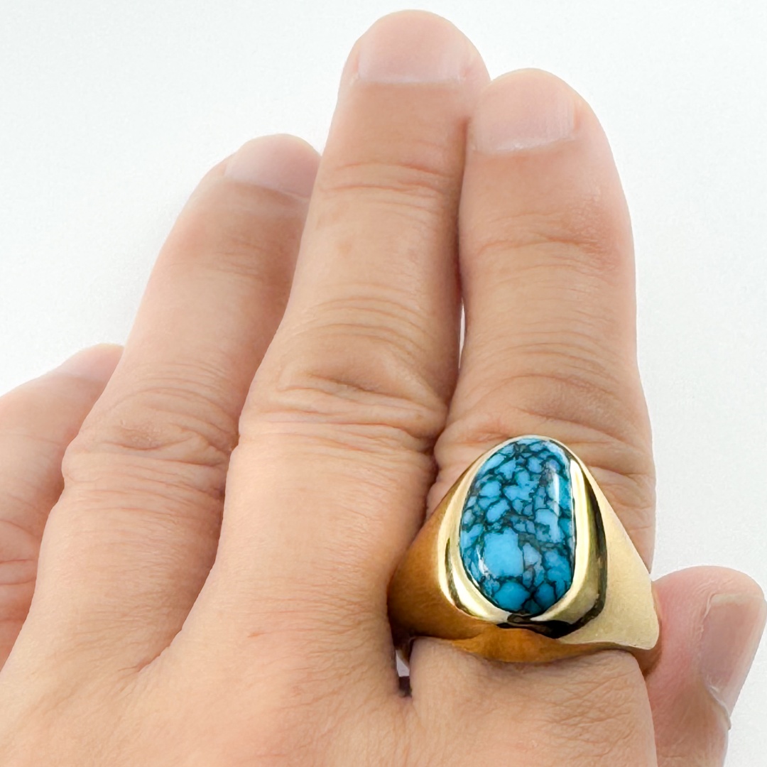 Lone Mt.はワイルドな表情の石もあれば、このリングの石のようにくっきりとした美人もいて、天然ならではの楽しみを与えてくれる。