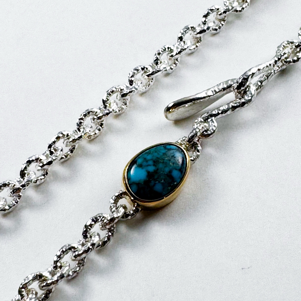 セットされた石は、スカイストーン・トレーディングのイチ押し、ローンマウンテン(Lone Mountain Turquoise)。