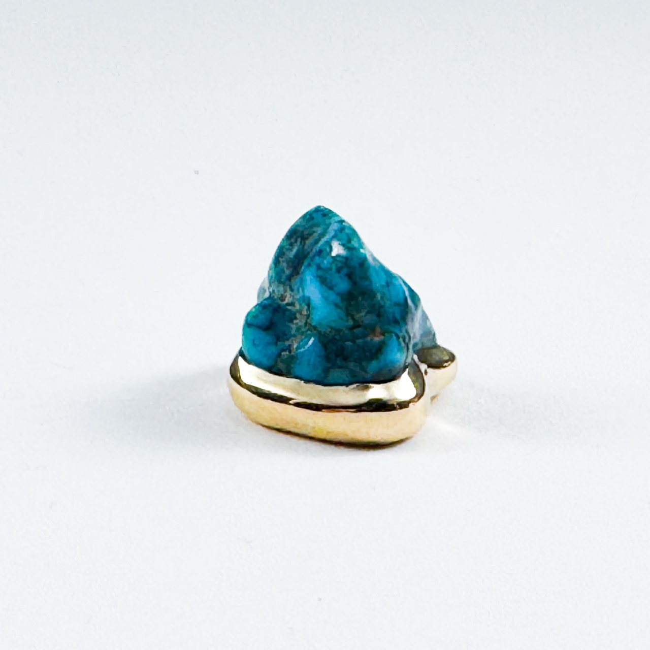 厚みがある高品位のLone Mountain のナゲットは通常、真ん中から2枚におろし複数のジュエリーを制作する。