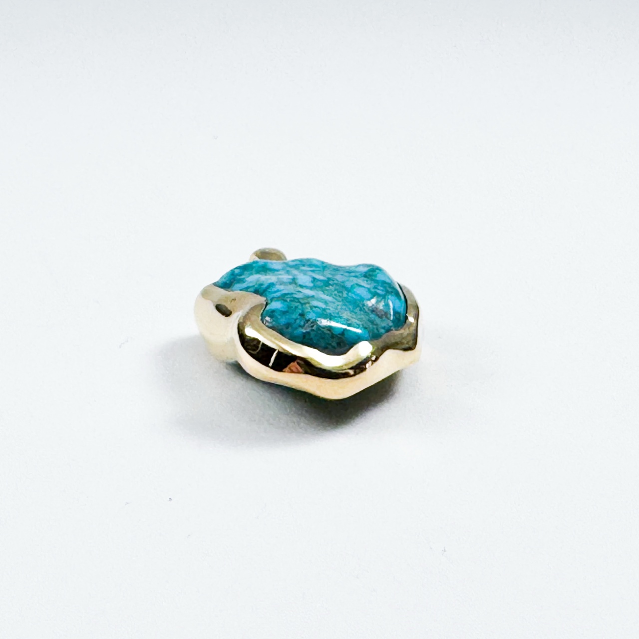 厚みがある高品位のLone Mountain のナゲットは通常、真ん中から2枚におろし複数のジュエリーを制作する。