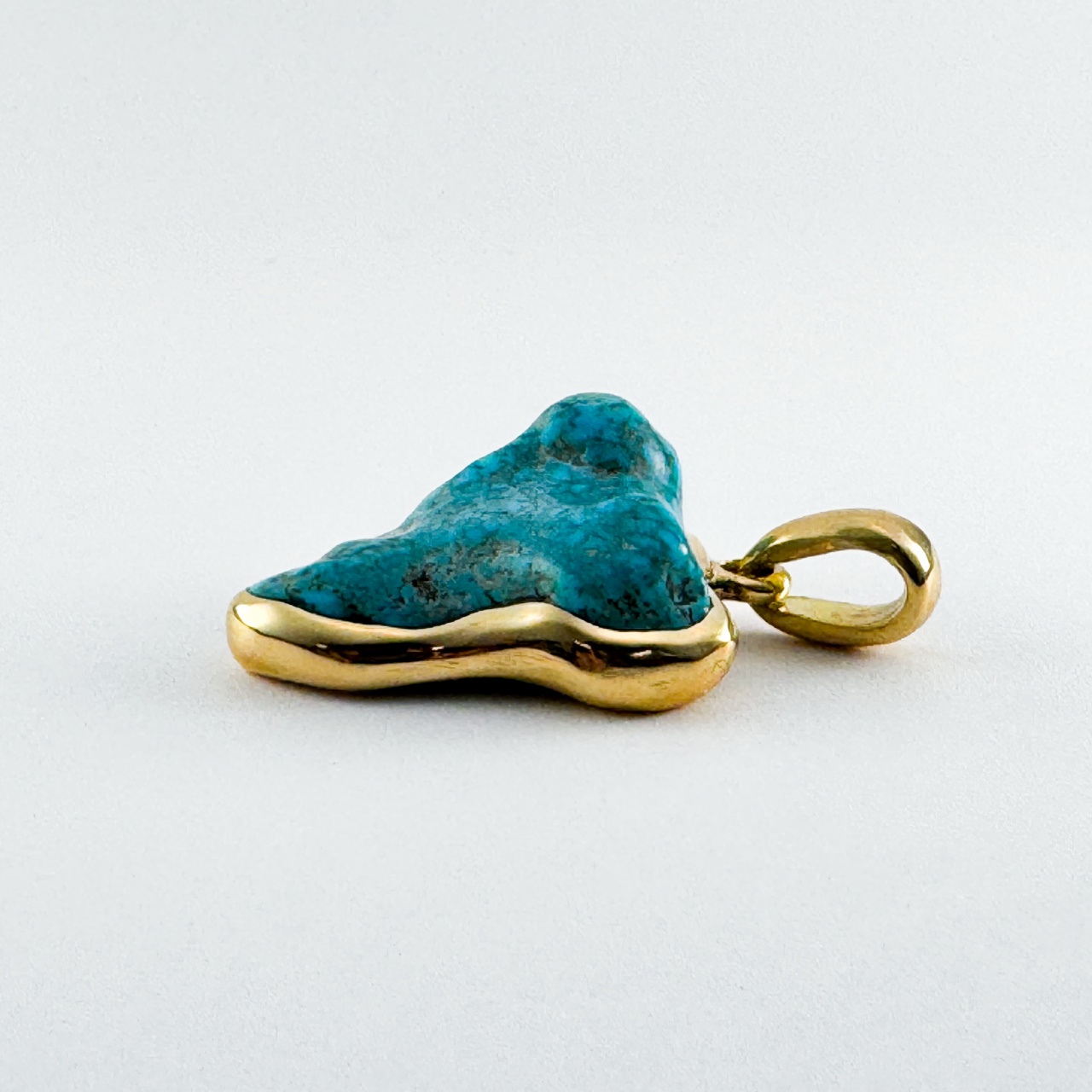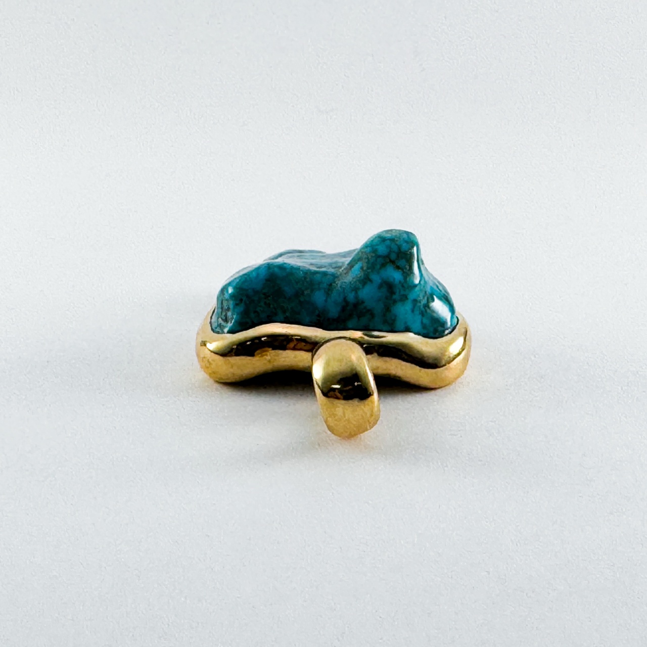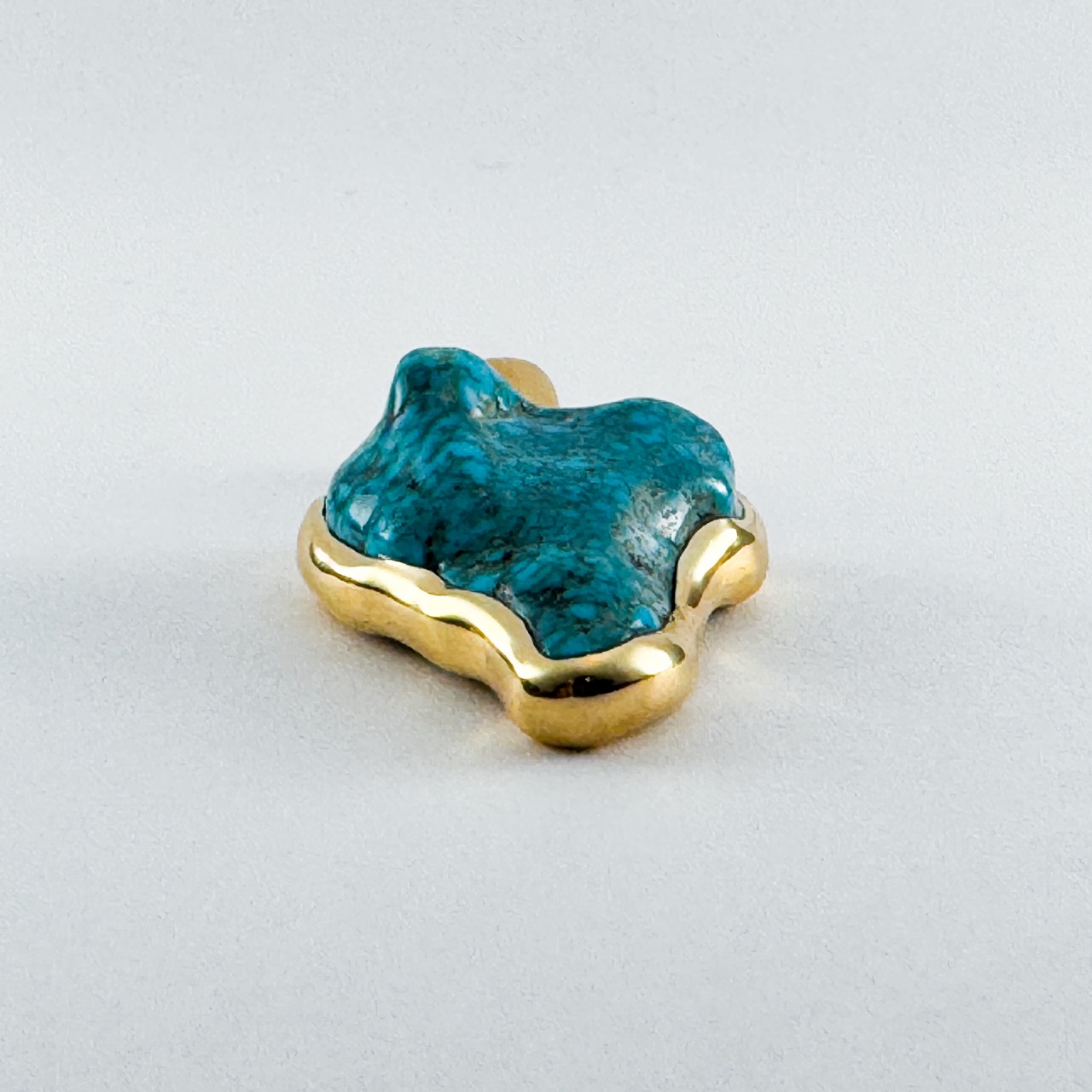 厚みがある高品位のLone Mountain のナゲットは通常、真ん中から2枚におろし複数のジュエリーを制作する。