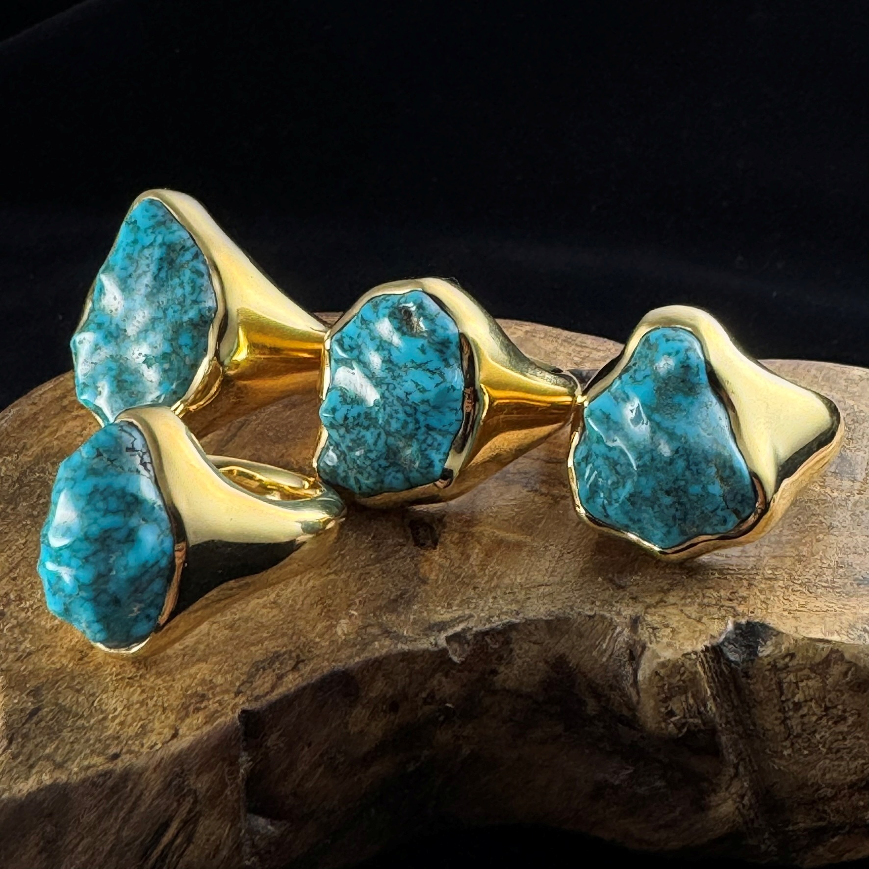 1970年±数年の限られた期間だけに採掘された極上のLone Mountainのナゲット(塊り状の原石)を、小寺が慎重に不要な部分だけを削り落とし、磨き上げています。