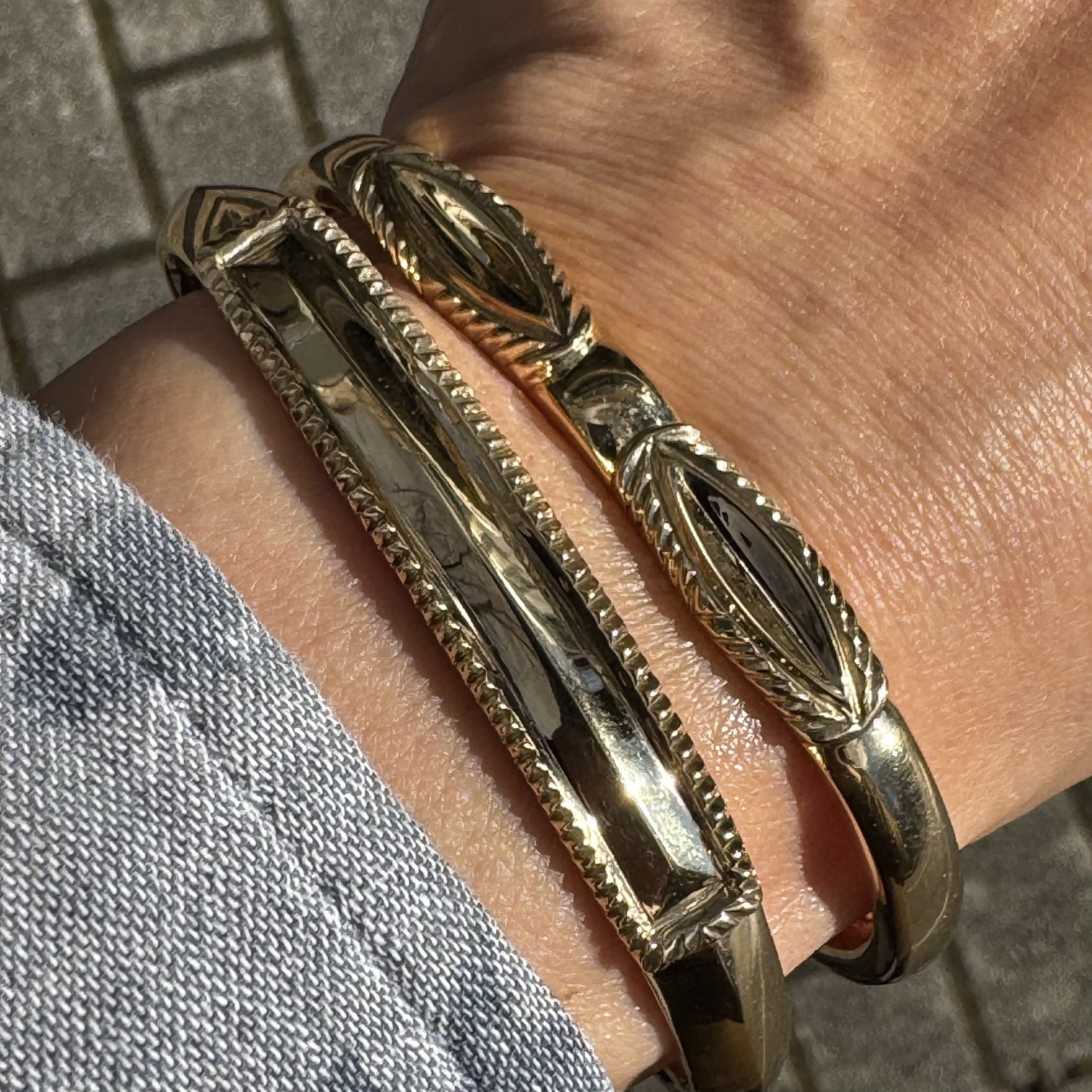 他のバングルをスタッキング(重ね着け)しても腕に馴染み、相乗効果で更に存在感がアップする。