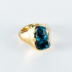 ローンマウンテンはチャールズ・ロロマをはじめ、巨匠アーティストたちに愛されてきた3大ターコイズの一つ。1970年代に最盛期を迎えたが、危険な採掘活動により鉱床が破壊され、現在は緻密な採掘計画のもと細々と採掘が行われている。採掘量の少なさによる希少性に加え、鮮やかで深い青色、変色や色落ちがほとんどないこと、豊かな艶により、その人気は年々上がっている。緑に転んだ青色に黒・茶・金茶のマトリックスが走る最上級グレードは「ゴールデンウェブ」として羨望の的になっている。